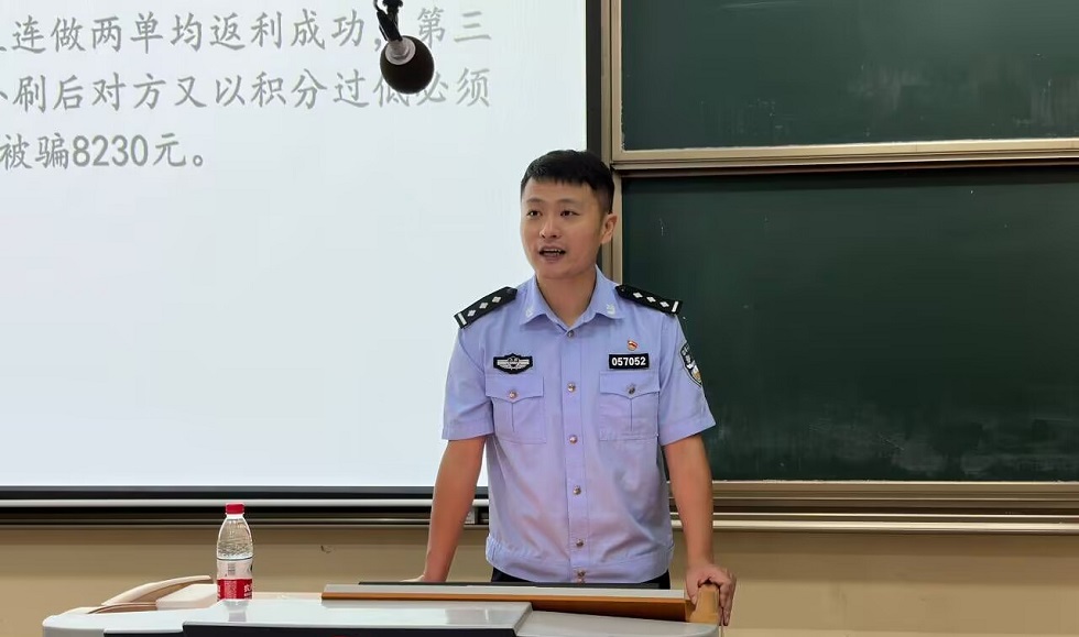 为提高新生的反诈意识,营造和谐有序的环境,创建文明校园,9月14日上午,学院开展了“全民反诈 平安同行”主题讲座,讲座由科教城派出所何之源警官主讲。何警官介绍了当今网络诈骗的方式,列举了我校师生的受骗案例,详细剖析了诈骗团伙的行骗方式,提醒同学们要提高认识,远离风险,保护好自己财产安全。此外,何警官通过播放短视频的方式与学生进行互动,呼吁同学们提高反诈能力,做有安全意识的大学生。