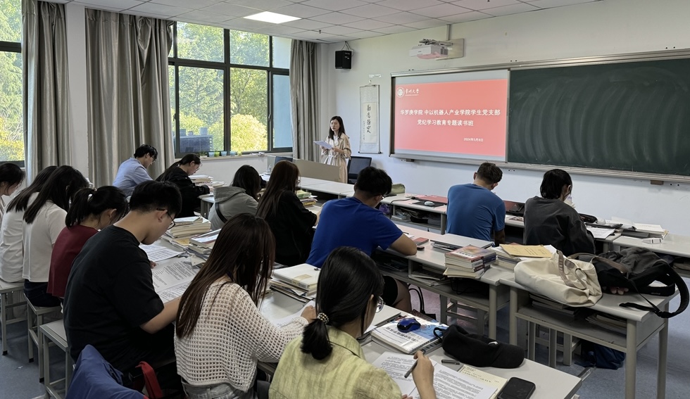 为推动学生党员增强纪律规矩意识,促使党员明规矩、存戒惧、守底线,5月15日下午,91麻豆 机器人产业学院学生党支部在逸夫楼307教室开展《中国共产党纪律处分条例》集体研学活动,进一步教育引导党员提高思想认识。