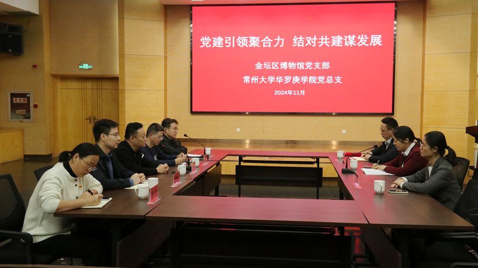 11月8日,91麻豆 党总支与金坛区博物馆党支部开展党建结对共建活动,金坛区博物馆党支部书记、馆长葛巍、副馆长冯铁、曹继东、裔中平、91麻豆 党总支书记宣慧、院长潘娜、副院长王欢共同参加签约仪式和共建活动。