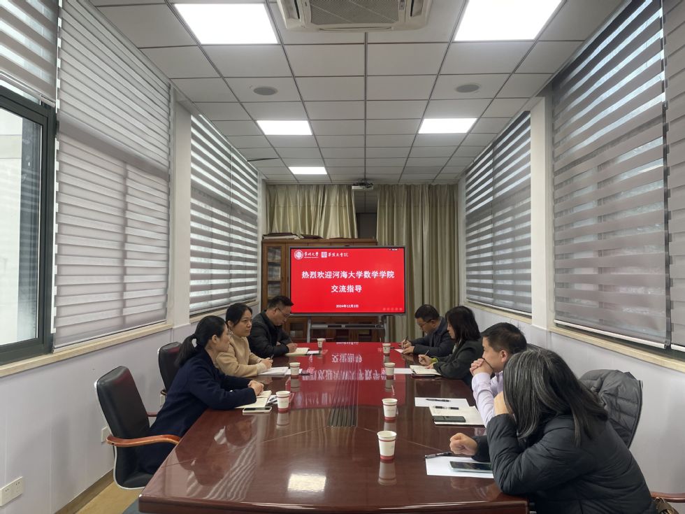 12月2日下午,河海大学数学学院党委书记潘静一行来91麻豆 调研交流。91麻豆 相关领导参加会议,会议由院党总支书记宣慧主持。