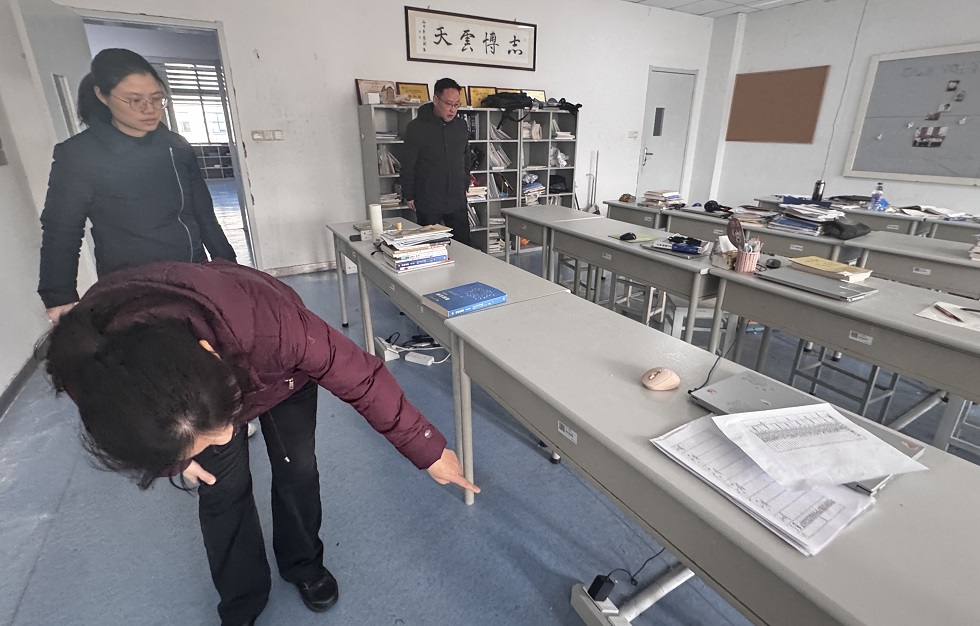 学院书记宣慧、院长潘娜、副院长王欢以及辅导员、学生党员走访了学生宿舍和教室,排查宿舍、教室安全隐患,对使用违章电器及乱接插排、钥匙插在门上等不良行为进行了批评和整改;对宿舍、教室地面、桌面等地的卫生情况及物品摆放情况进行了检查和指导,对物品摆放有掉落风险的及时进行了调整,积极落实宿舍及教室安全整治工作。