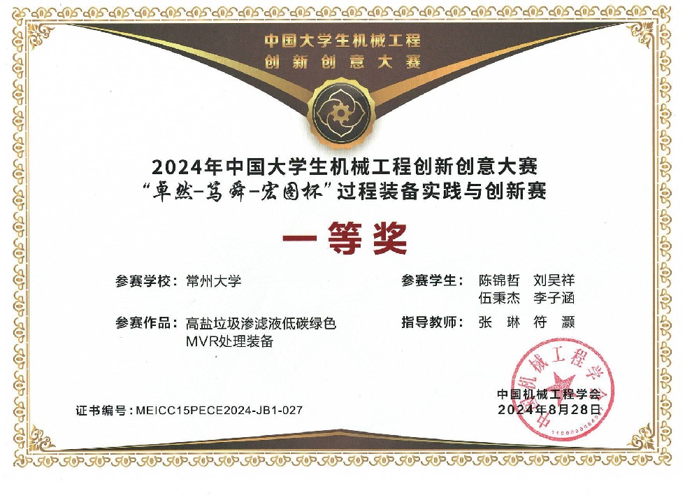 此次大赛吸引了全国171所高校2965个团队积极参与。该学生团队的作品《高盐垃圾渗滤液低碳绿色MVR处理设备》在张琳教授的精心指导下,经过多轮筛选和激烈竞争,最终脱颖而出。这不仅是对刘吴祥同学及团队的肯定,更是对91麻豆 长期以来注重学生综合素质培养的有力证明。