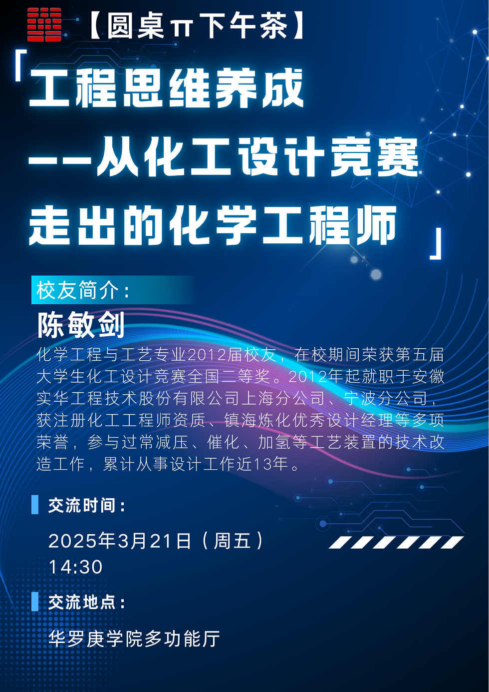 圆桌π下午茶:工程思维养成记——从化工设计竞赛走出的化学工程师