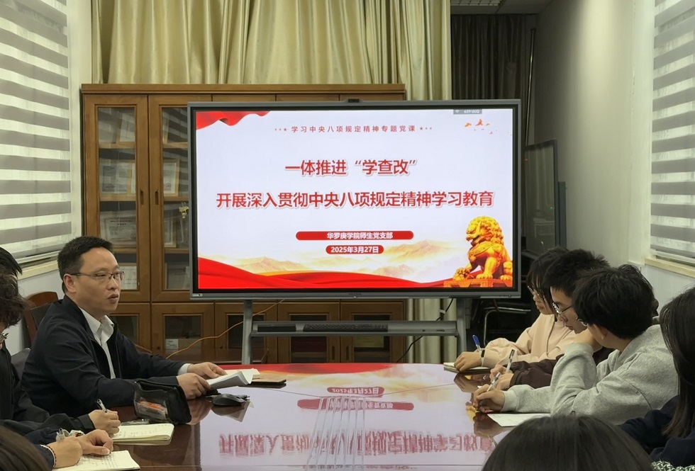 会上,支部书记王欢传达了校党委和院党总支关于深入贯彻中央八项规定精神学习教育的部署要求。与会党员集体学习了中央八项规定精神及其实施细则。