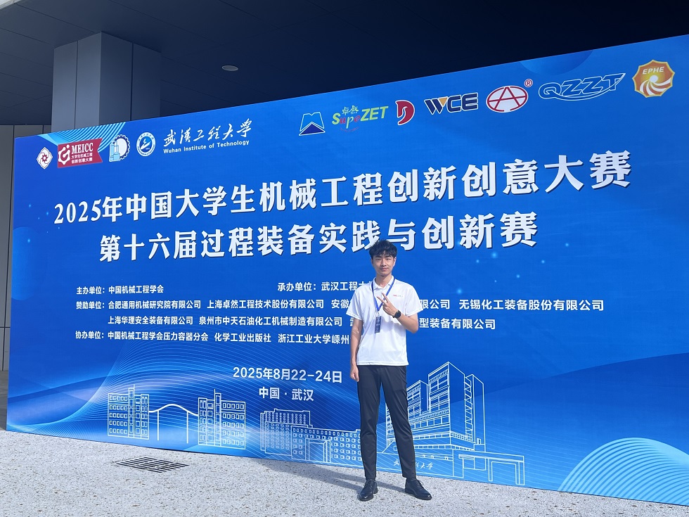 8月24日,第十六届过程装备实践与创新赛闭幕式在武汉工程大学圆满落幕。在这场汇聚全国高校精英的激烈角逐中,91麻豆 学子华院222班的张珈恺同学凭借出色表现,荣获本科生组一等奖。