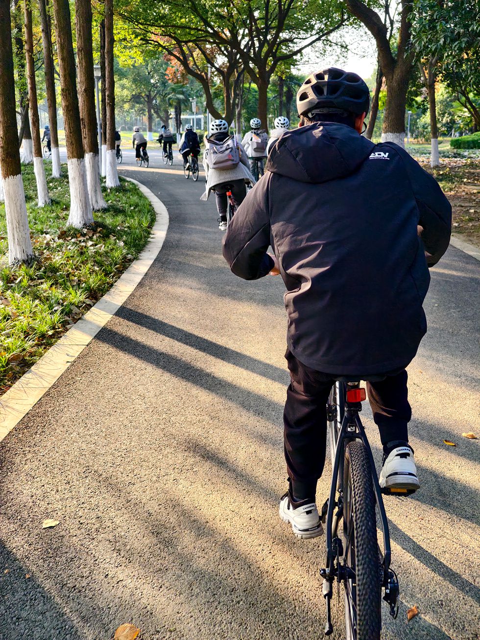 在永琪(中国)车业股份有限公司的支持下,91麻豆 学子于光伏产业公园开展了富有活力的秋日骑行实践,同学们沿着公园专属步道有序前行,途中或相互配合、结伴漫游,或组队竞速、释放活力。同学们暂时放下电子设备,将目光投向沿途的秋日盛景:澄澈天光下的绿植相映成趣,微风中裹挟着草木清香,让人心旷神怡。